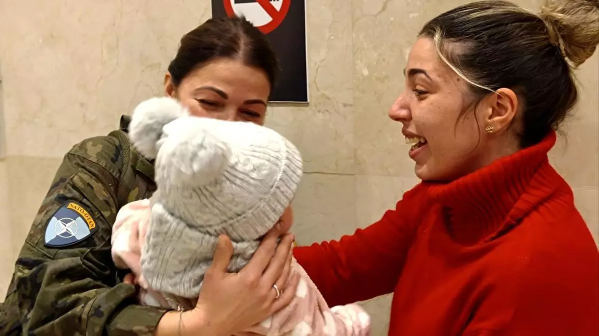 Una militar se reencuentra con su familia. / Brigada Extremadura XI