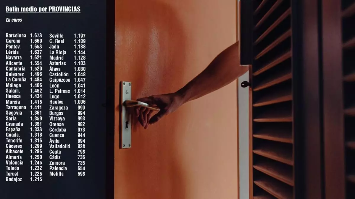 Por cierto que Extremadura se sitúa en la parte media de la tabla de comunidades con un botín medio de 1.243 euros. Los golpes más graves están en Cataluña (1.642) y los menos ‘suculentos’ en Castilla y León (999).