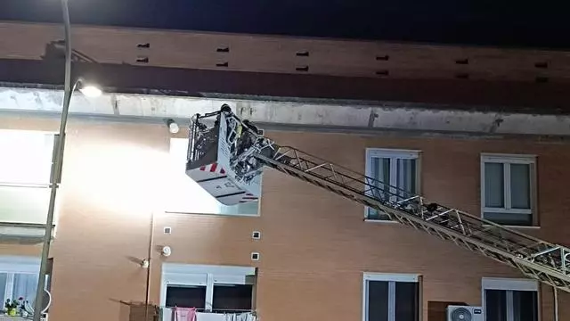 Los bomberos han tenido que utilizar una autoescala hidráulica para llegar hasta el tercer piso de la vivienda y poder adentrarse por la ventana, que se han visto obligados a romper.