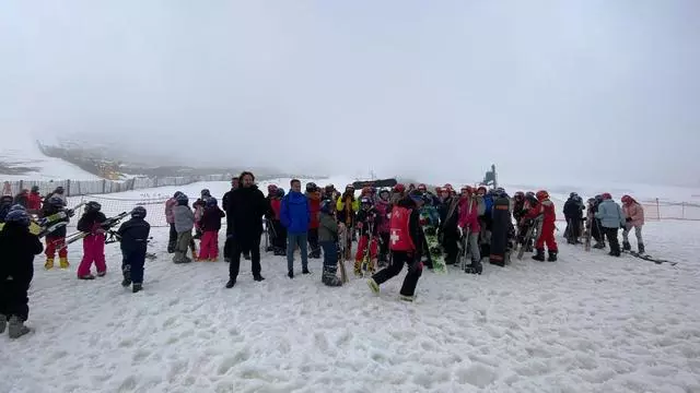 Autoridades, técnicos, profesores y estudiantes en la estación de esquí de La Covatilla. / EL PERIÓDICO
