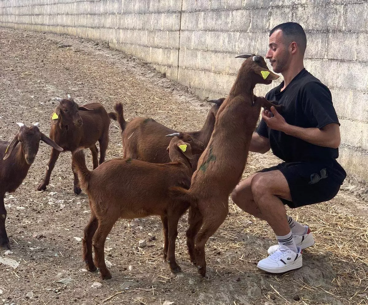 Mohamed Yasser Ali acaricia a una cabra en las prácticas en Casar de Cáceres / Cedida