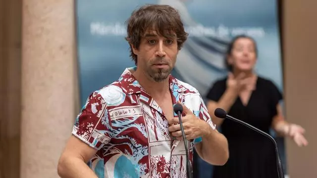 Leo Rivera presentando la obra.
