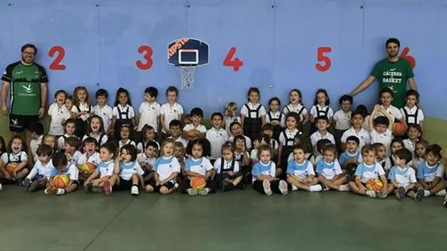 La plantilla del Cáceres Patrimonio la Humanidad inició ayer una parte importante de su actividad fuera de la pista: las visitas a los escolares para compartir sus experiencias e invitarles a los encuentros de la LEB Oro.