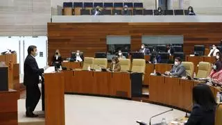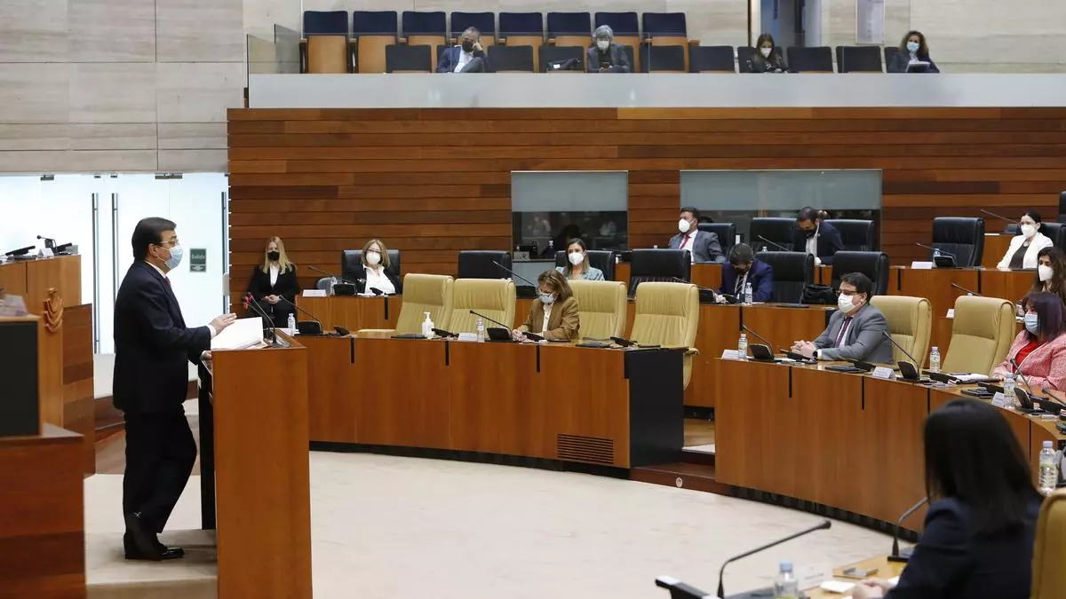 El presidente de la Junta durante su intervención en la Asamblea. / Asamblea de Extremadura