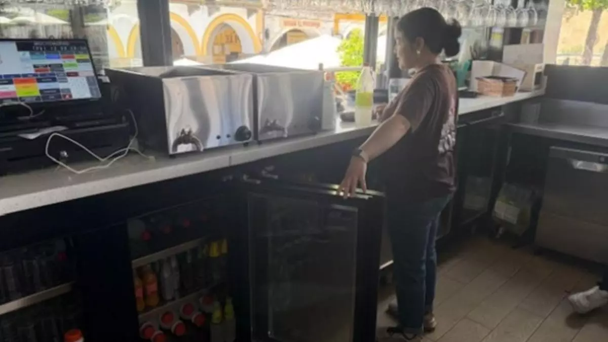 Camarera de un establecimiento hostelero de Mérida durante el apagón. / ALBERTO MANZANO