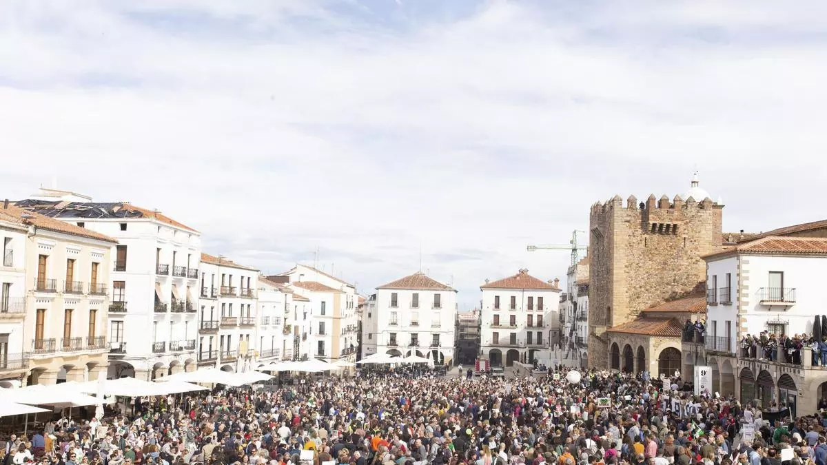 CACERES. MANIFESTACION CONTRA LA MINA EN LA PLAZA MAYOR EN NOVIEMBRE DE 2024. / Jorge Valiente