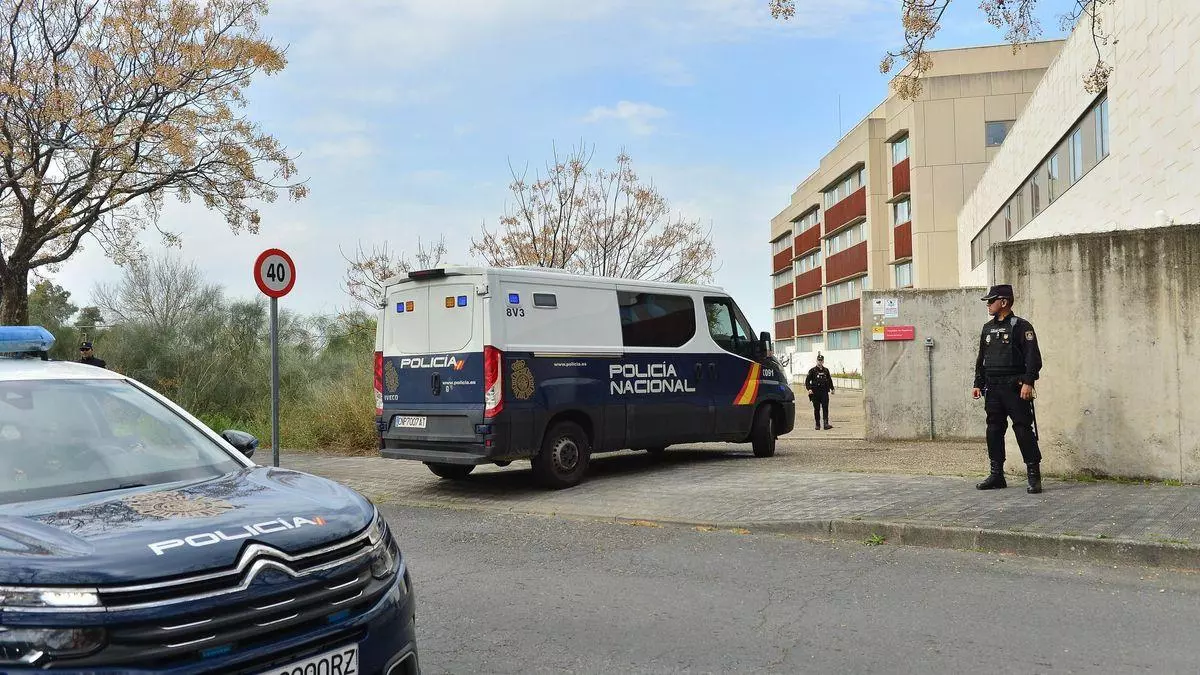 La Policía Nacional, en San Lázaro, tras el tiroteo en Plasencia en el que murió una niña. / TONI GUDIEL